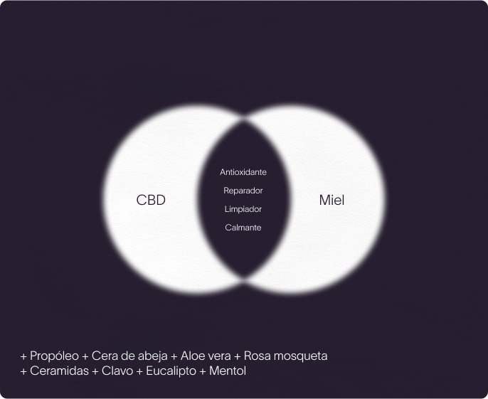 El CBD y la miel comparten sus propiedades calmantes, reparadoras e hidratantes. Esta sinergia natural nos permite, unido a otros activos naturales, beneficiarnos de la inteligencia de la naturaleza para promover el cuidado de nuestra piel: